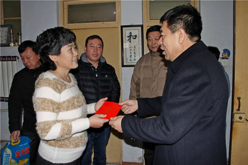 在新春佳節即將到來之際,1月30日上午,衡水市市委副秘書長張興良代表市委書記王景武同志, 在集團工會韓紅喜主席的陪同下,到我公司困難職工趙鳳娥家中親切慰問,并送去了慰問金和慰問品,趙鳳娥對市委領導的慰問表示了感謝,表示一定要努力戰勝目前的困難,積極面對生活,張秘書長認真詢問了趙鳳娥同志的家庭生活和病情康復情況,鼓勵她要堅強生活下去,同時要求市區各級工會部門要開展好為困難職工送溫暖、送愛心、送幸福活動,讓所有職工過上一個愉快、平安、祥和、幸福的春節!