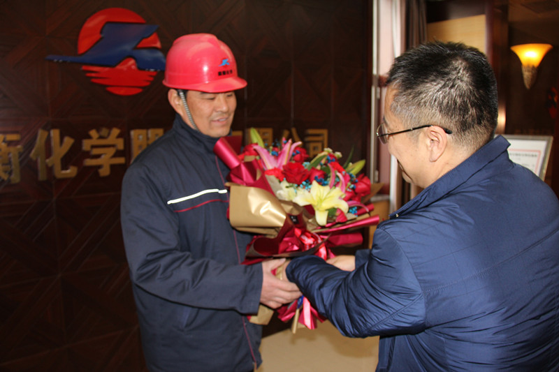 新春將至,1月14日下午,衡水高新區黨工委委員、管委會副主任呼峻嶺走訪慰問冀衡化學公司勞動模范徐玲濤同志,呼主任為徐玲濤送上鮮花,祝賀他作為一線員工榮獲河北省勞動模范光榮稱號,并鼓勵徐玲濤繼續發揚工匠精神、勞模精神,在平凡的崗位上爭取做出更大的成績,為企業發展再創新功,再創佳績。